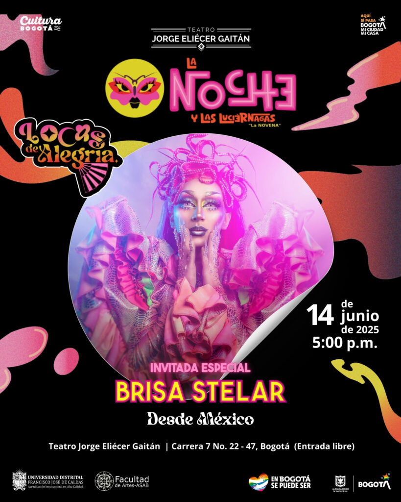 ‣ 14 de junio, escenario central teatro Jorge Eliécer Gaitán, Gala drag Locas de Alegría, 5 a 8.30 p.m., con apoyo de la Facultad de Artes-ASAB.